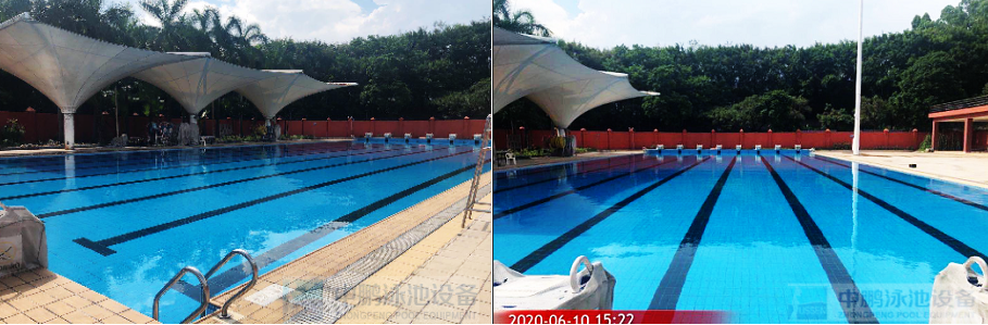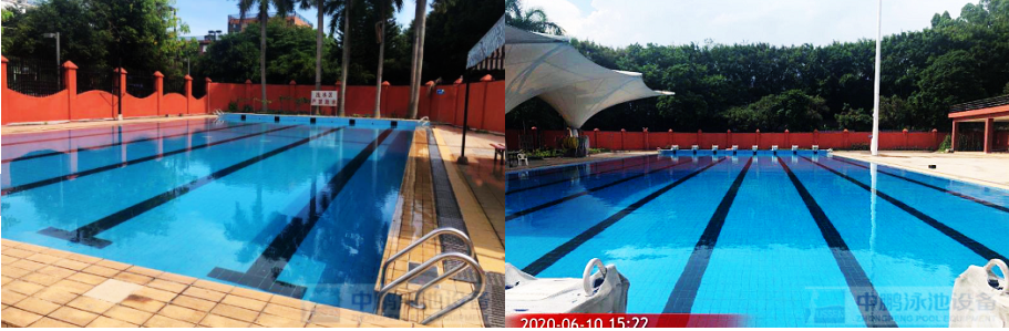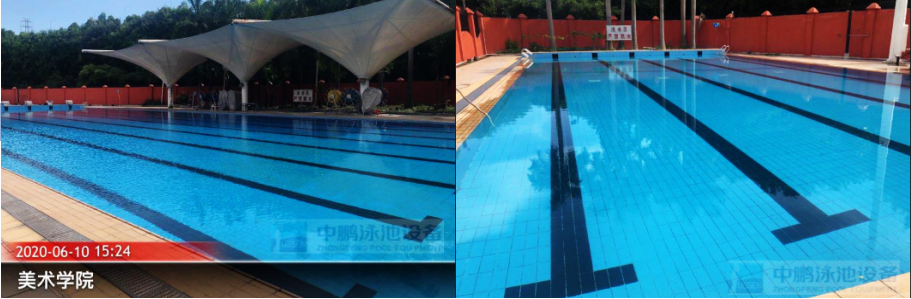 近日由我司廣州中鵬康體設(shè)備有限公司承建的廣州美術(shù)學(xué)院大學(xué)城校區(qū)游泳池水循環(huán)系統(tǒng)配套設(shè)備及安裝服務(wù)工程。室外用泳池工程配套設(shè)備,泳池采用混流式運(yùn)行,水溫常溫:標(biāo)準(zhǔn)池面積約1250平方,水深1.6m~2.0m;平均水深1.8m,容積約2230立方;訓(xùn)練池面積約312平方;水深1.1m~1.4m,平均水深1.25m;容積約390立方;循環(huán)周期5-7h;過(guò)濾流量:360立方/h;用電量:55kw。泳池設(shè)備包括有,循環(huán)過(guò)濾系統(tǒng)、水質(zhì)凈化消毒系統(tǒng)、電控系統(tǒng)等。循環(huán)過(guò)濾器、消毒器、水下照明燈、水質(zhì)監(jiān)控系統(tǒng)、采用我司菲臣FUSSEN品牌的高品質(zhì)循環(huán)水泵、過(guò)濾砂缸和泳池水下燈,投藥裝置是用意大利著名品牌Seke,全程監(jiān)控水質(zhì)情況,電氣系統(tǒng)包括泳池機(jī)房控制柜上樁及泳池水下燈具全部電線動(dòng)力控制安裝,一流的技術(shù)有效的速率,項(xiàng)目已經(jīng)順利完工正投入使用得到校方非常滿意認(rèn)可。